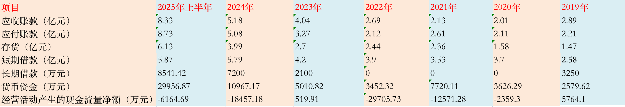 同时,应收票据也从2022年的6257.13万元攀升至2025年上半年的2.73亿元,占流动资产比例从9.11%升至12.77%。