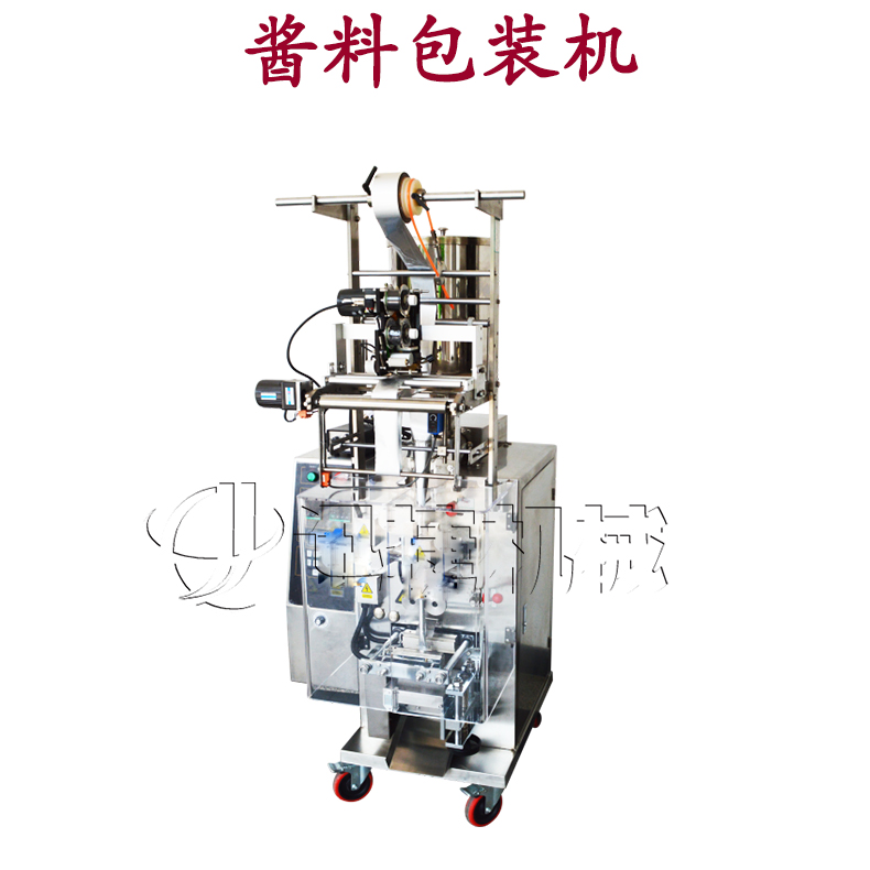 製袋醬料包裝機是伦理片一区二区三区機械主要針(zhēn)對粘稠並帶有顆粒類的醬狀物料灌裝而設計的,物料接觸部分均(jun1)采用316L不(bú)鏽鋼材料製成(chéng);灌裝量和灌裝速度均可任意調節,罐裝精度高。廣泛應(yīng)用於辣椒醬、麻辣醬、香辣醬、牛肉醬、豆(dòu)辨醬、鮮辣醬(jiàng)、豆豉及郫(pí)縣豆醬等醬類包裝。